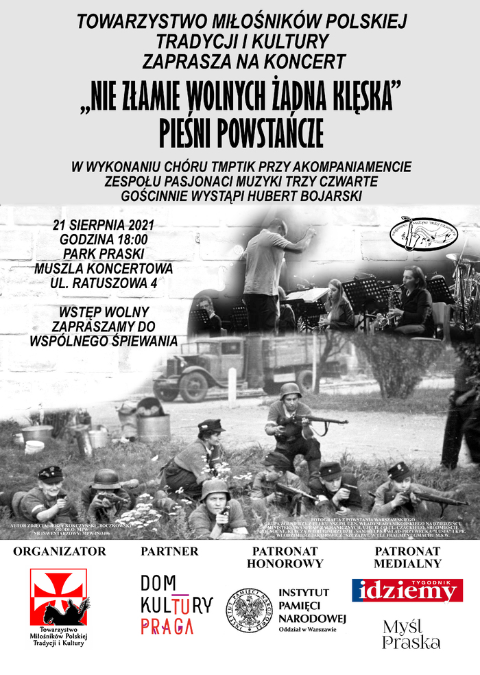 Zapraszamy na koncert pieśni powstańczych „Nie złamie wolnych żadna Klęska” organizowany przez Towarzystwo Miłośników Polskiej Tradycji i Kultury.