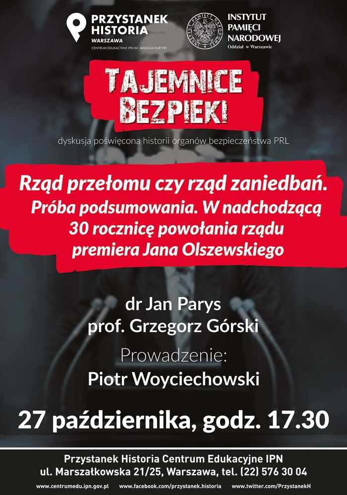 „Rząd przełomu, czy rząd zaniedbań. Próba podsumowania. W nadchodzącą 30. rocznicę powołania rządu premiera Jana Olszewskiego” to temat kolejnej dyskusji w ramach cyklu „Tajemnice bezpieki”.