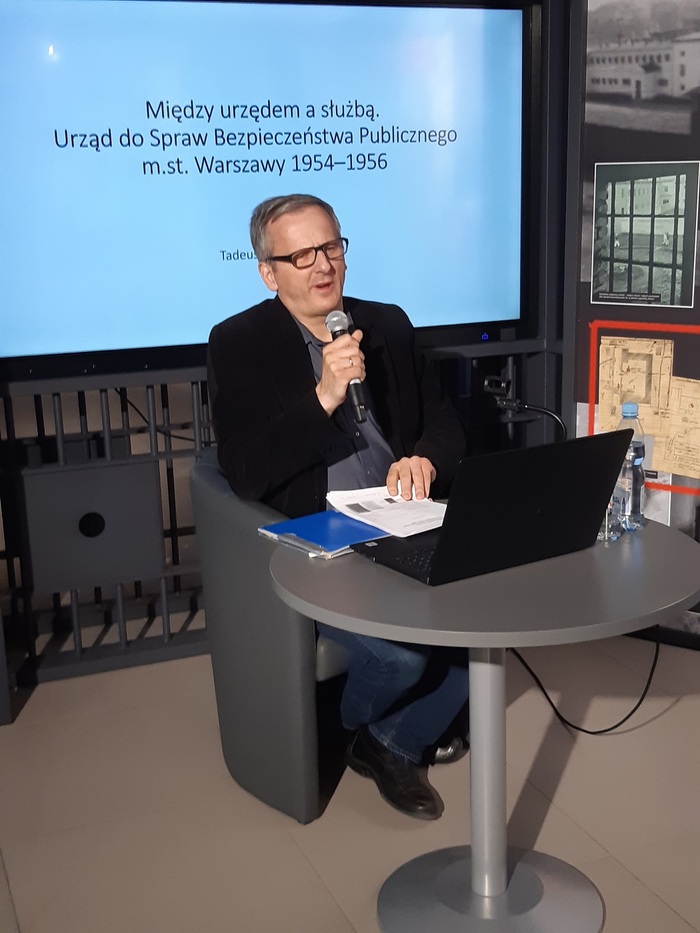 „Między urzędem a służbą. Urząd do Spraw Bezpieczeństwa Publicznego m.st. Warszawy 1954–1956” – wykład dr. Tadeusza Ruzikowskiego w ramach cyklu „Warszawskie wędrówki z historią”.