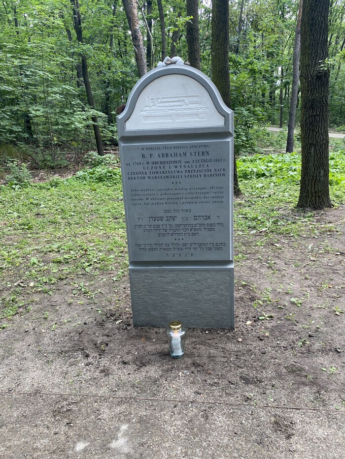 Staraniem Fundacji Dziedzictwa Kulturowego powstało upamiętnienie wielkiego wynalazcy Abrahama Sterna, który jest uznawany za prekursora cybernetyki. W roku 2022 r. zostały przeprowadzone badania archeologiczne, które pozwoliły na odnalezienie miejsca jego pochówku. To miejsce zyskało w roku 2022 swoje upamiętnienie – symboliczną macewę z tekstem w j. polskim i hebrajskim oraz z płaskorzeźbą przedstawiającą maszynę liczącą (słynny wynalazek Sterna). Abraham Stern zaczynał jako zegarmistrz w Hrubieszowie gdzie już w 1810 r. skonstruował serię maszyn liczących, które wykonywały cztery podstawowe działania arytmetyczne i potrafiły również wyciągać pierwiastki kwadratowe. Wypatrzywszy go Stanisław Staszic ściągnął do Warszawy, dzięki czemu Stern następnie skonstruował „machinę rachunkową” wykonującej „sama przez się” wszystkie cztery działania matematyczne- co było rewolucyjne jak na tamte czasy. Od 1830 r. członek Towarzystwa Przyjaciół Nauk. Celem projektu było przywrócenie miejsca pamięci temu wybitnemu polsko-żydowskiemu wynalazcy