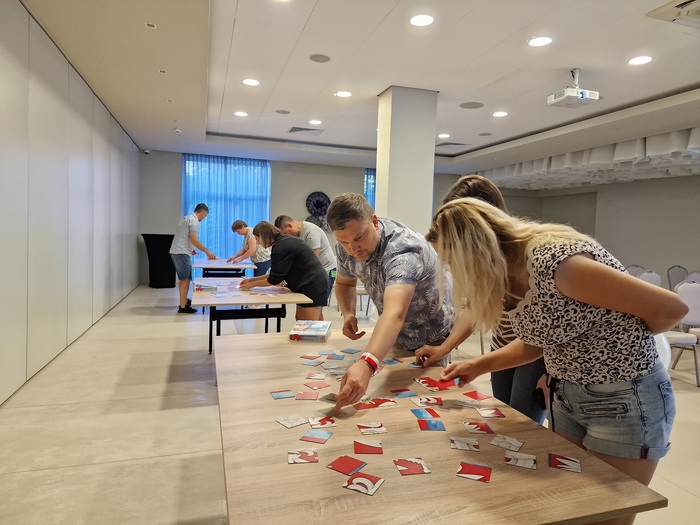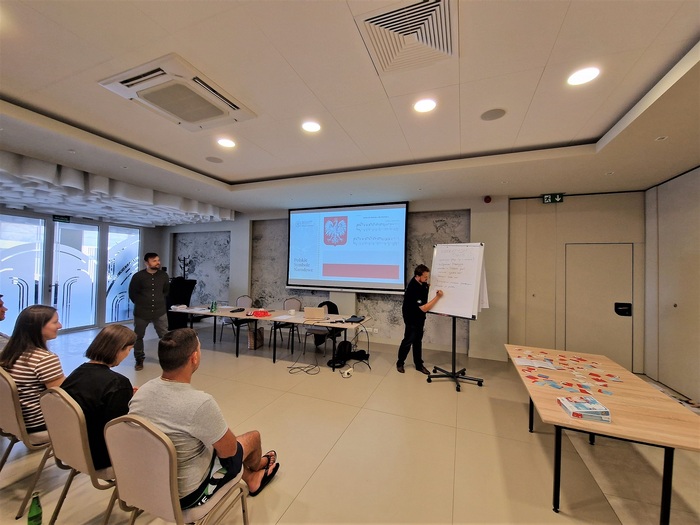 Na zakończenie zajęć, w ramach integracji, słuchacze zapoznali się ze szczegółami graficznymi herbu Rzeczypospolitej Polskiej układając puzzle edukacyjne „Polak Mały”.