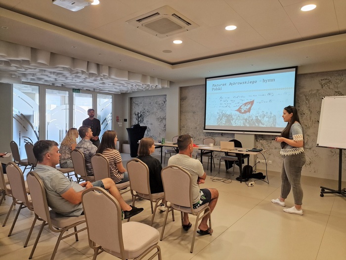 Prelegenci zapoznali słuchaczy z historią i znaczeniem polskich symboli narodowych - herbu, barw i hymnu Rzeczypospolitej Polskiej. Podczas zajęć prowadzący zaprezentowali wybrane wzory herbów Królestwa Polskiego, Rzeczypospolitej Obojga Narodów i Rzeczypospolitej Polskiej od początków przedstawień z XIII wieku do czasów współczesnych, wyjaśnili różnice między godłem a herbem, omówili znaczenie barw narodowych, podali prawidłowe wymiary flagi i zasady jej eksponowania oraz przedstawili historię powstania Pieśni Legionów Polskich we Włoszech i jej „drogi” do stania się hymnem państwowym.