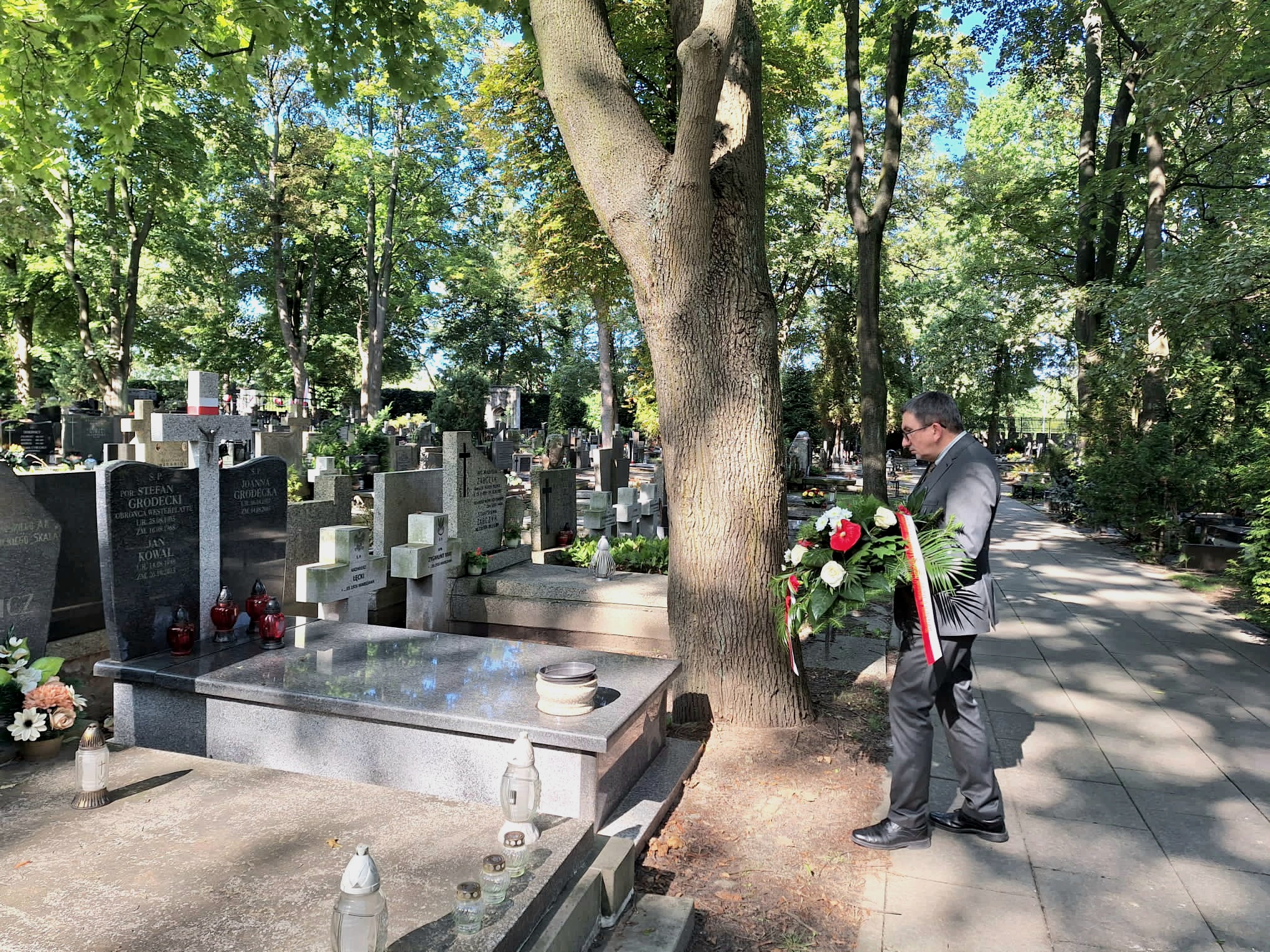 - na grobie Stefana Ludwika Grodeckiego na Cmentarzu Wojskowym przy ul. Powązkowskiej 43/45 (kwatera B18 rz. 1)  /  Warszawa