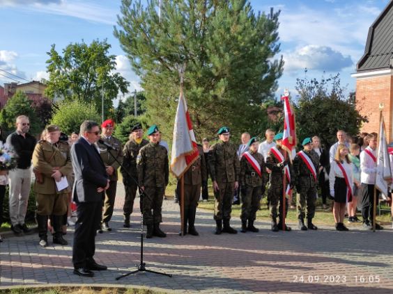 Kolejnym elementem wydarzenia były krótkie przemówienia, a po nich uroczyste odsłonięcie i poświęcenie tablicy oraz składanie kwiatów w asyście żołnierzy Wojska Polskiego .