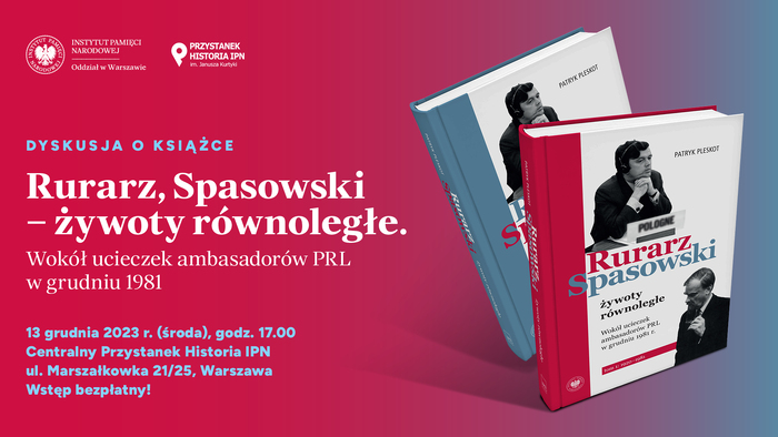 W środę 13 grudnia 2023 r. w Centralnym Przystanku Historia IPN w Warszawie przy ul. Marszałkowskiej 21/25 odbyło się spotkanie poświęcone dwutomowej książce Patryka Pleskota „Rurarz, Spasowski – żywoty równoległe. Wokół ucieczek ambasadorów PRL w grudniu 1981”.