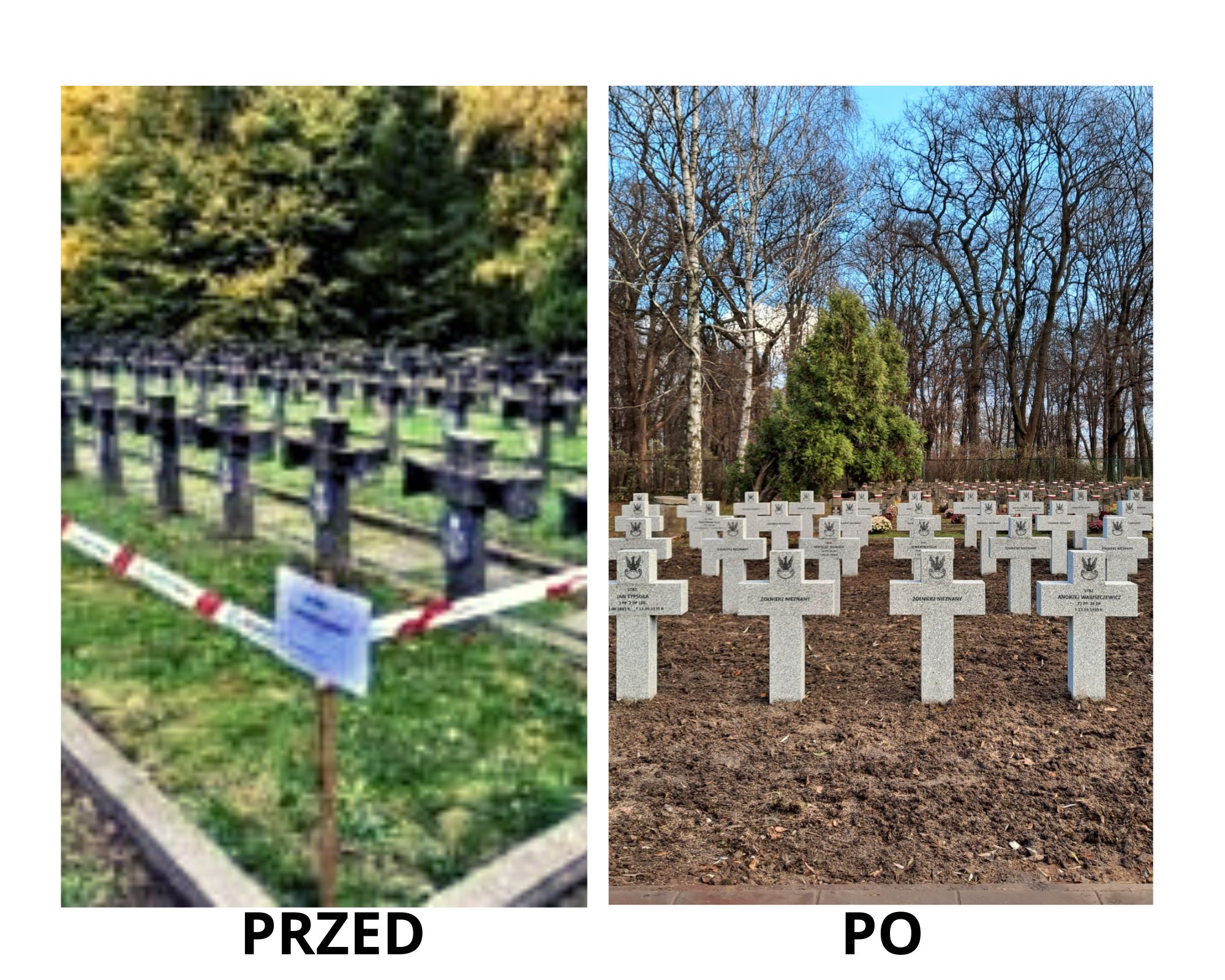 Prace remontowe polegały na wymianie 65 zniszczonych krzyży betonowych na granitowe z wypiaskowanym tekstem inskrypcyjnym oraz piaskowanym orłem.