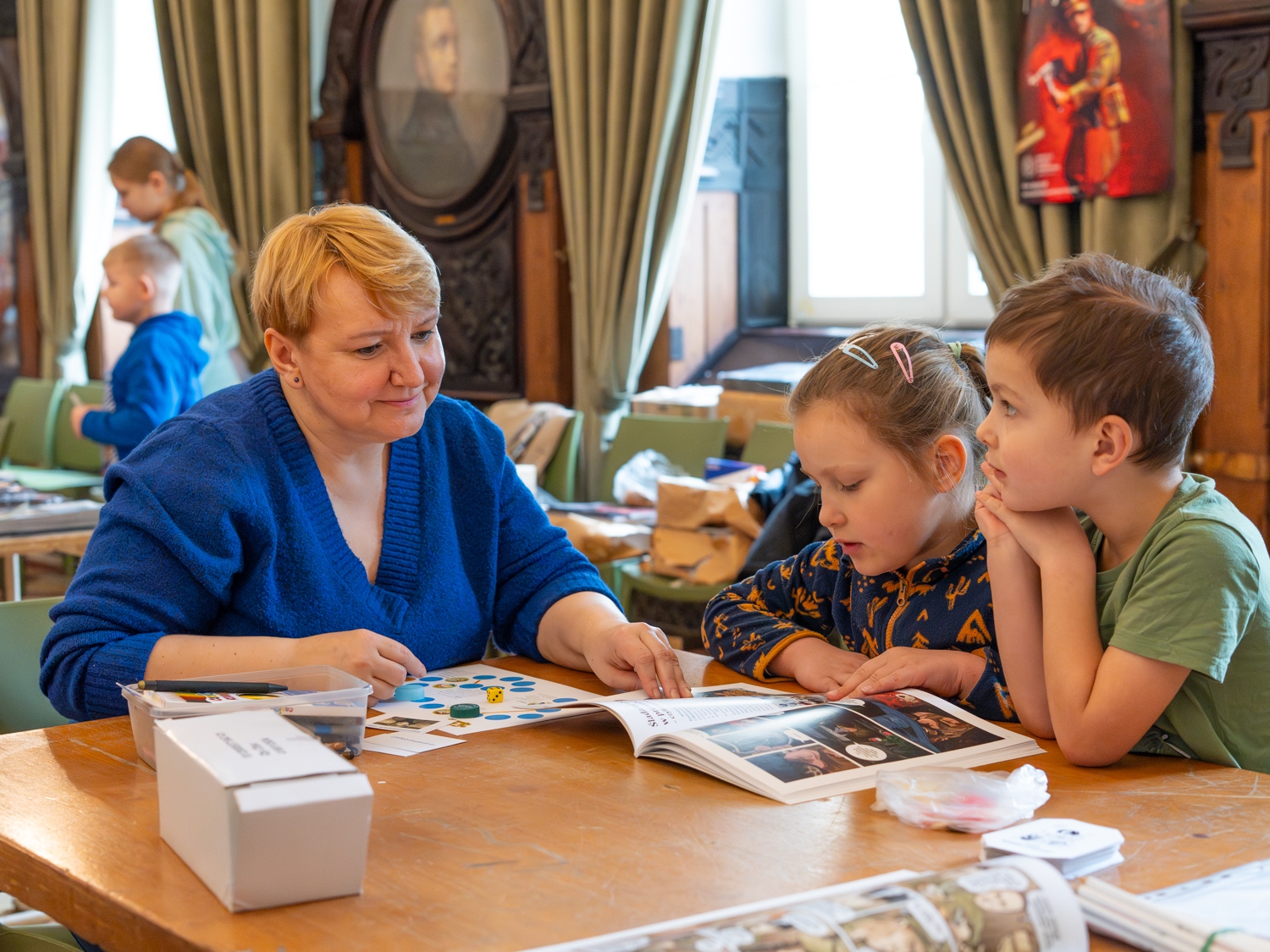 Edukatorzy z Oddziałowego Biuro Edukacji Narodowej IPN w Warszawie prowadzili zajęcia komiksowe, wykonywali okolicznościowe przypinki i magnesy. Dzieci z zaangażowaniem rozwiązywały łamigłówki przygotowane w oparciu o komiksy historyczne warszawskiego oddziału IPN i grały w gry historyczne m.in. Znaj znak.