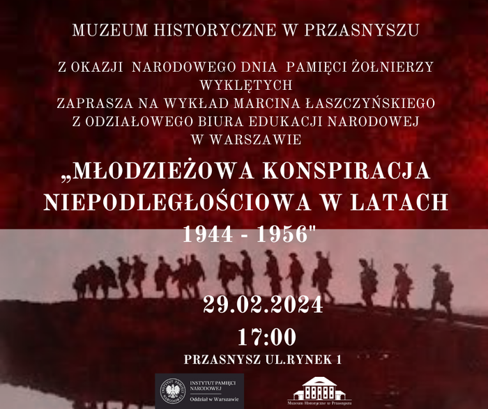 W czwartek 29 lutego 2024 r. w Muzeum Historycznym w Przasnyszu Marcin Łaszczyński z Oddziałowego Biura Edukacji Narodowej IPN w Warszawie wygłosił dwa wykłady z okazji Narodowego Dnia Pamięci Żołnierzy Wyklętych.