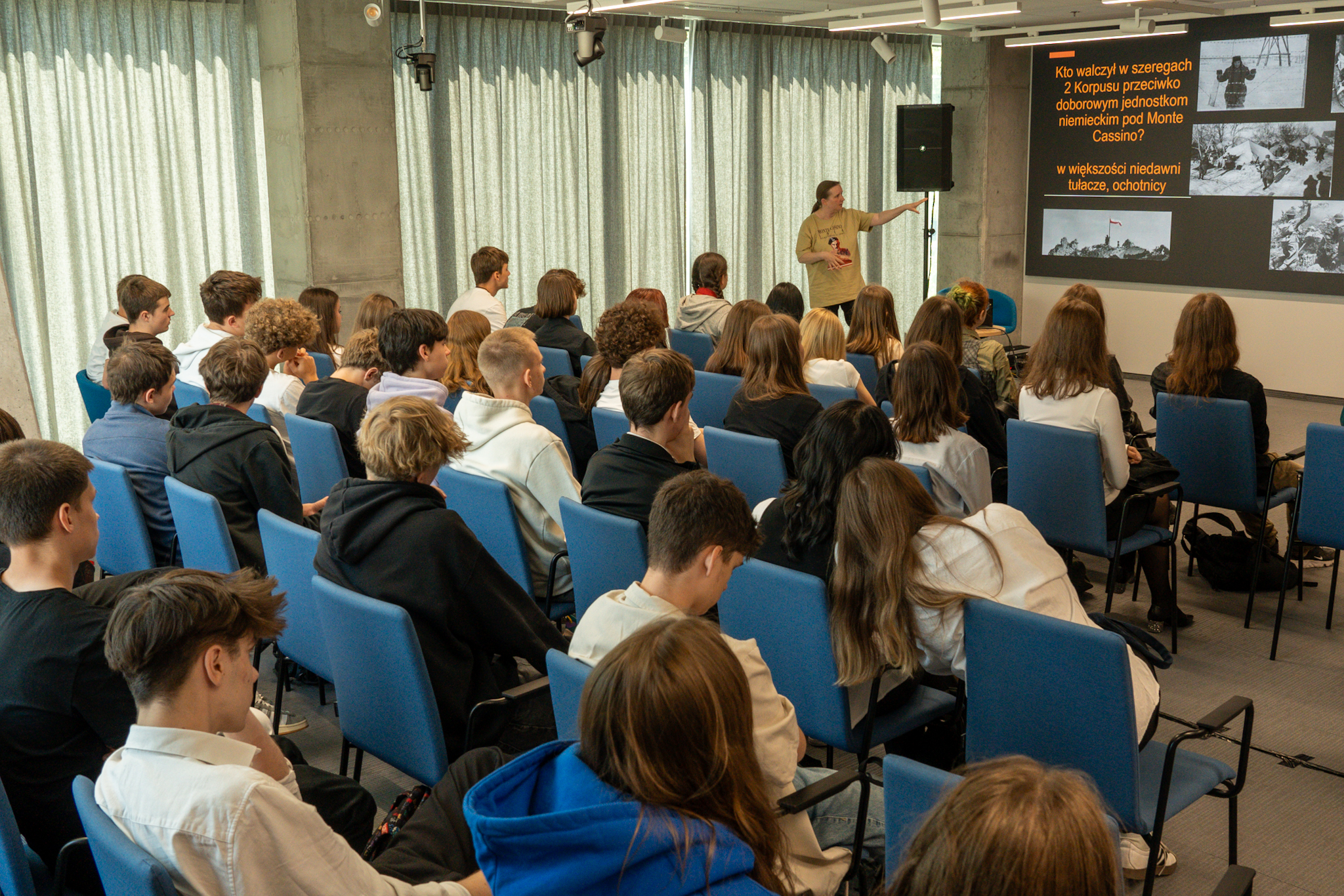 Oprócz zajęć praktycznych młodzież wysłuchała wykładów dr Anety Hoffmann, prezes Fundacji Znaki Pamięci o wojennych i powojennych losach żołnierzy walczących pod Monte Cassino.