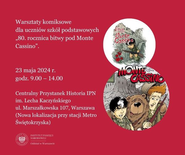 W związku z przypadającą w tym roku 80. rocznicą bitwy o Monte Cassino Oddziałowe Biuro Edukacji Narodowej IPN w Warszawie zorganizowało warsztaty edukacyjne dla uczniów szkół podstawowych z twórcami komiksów IPN z serii „Wojenna Odyseja Antka Srebrnego” i „Aga, Adam i Hamlet na tropie tajemnic”: Agatą Ronek (kolorystką) i Hubertem Ronkiem (rysownikiem)