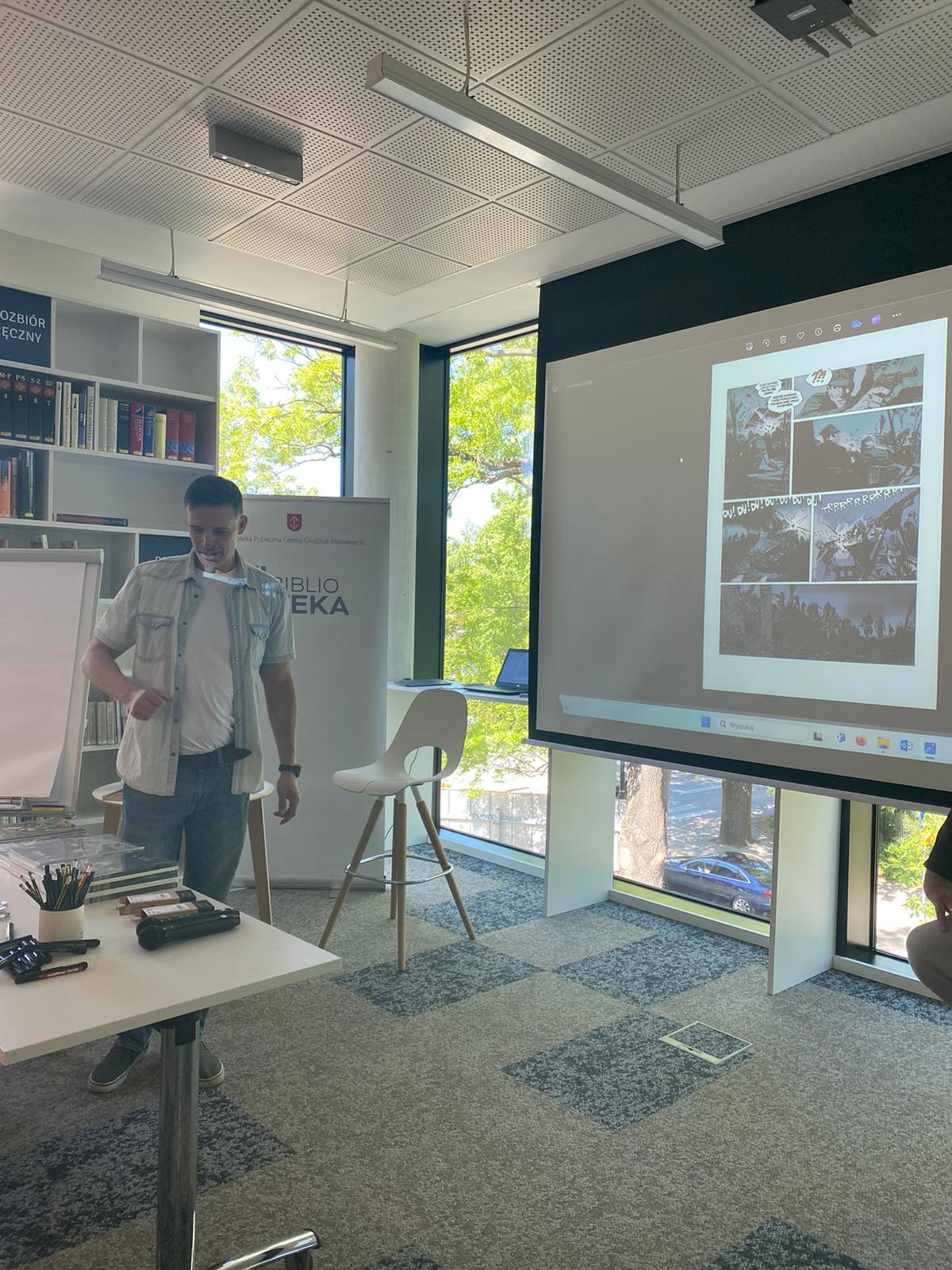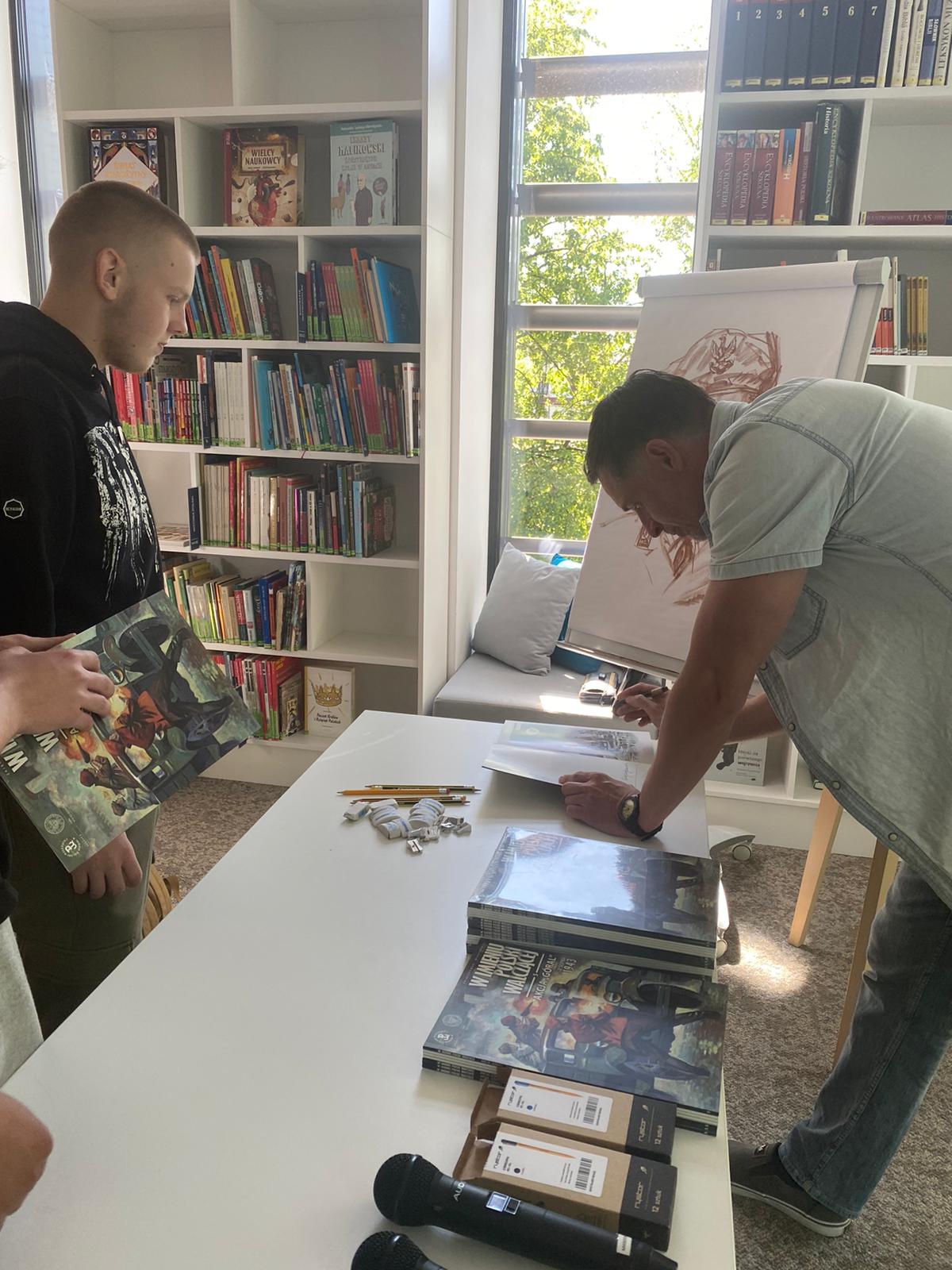 Twórcy komiksu opowiedzieli o technice ich tworzenia (jak wygląda pisanie scenariuszy i rysowanie). Uczniowie pod okiem autorów rysowali scenki komiksowe. Spotkanie było formą prezentacji najnowszego zeszytu o Monte Cassino. Uczestniczy mogli otzrymać autografy i upominki m.in. komiksy.