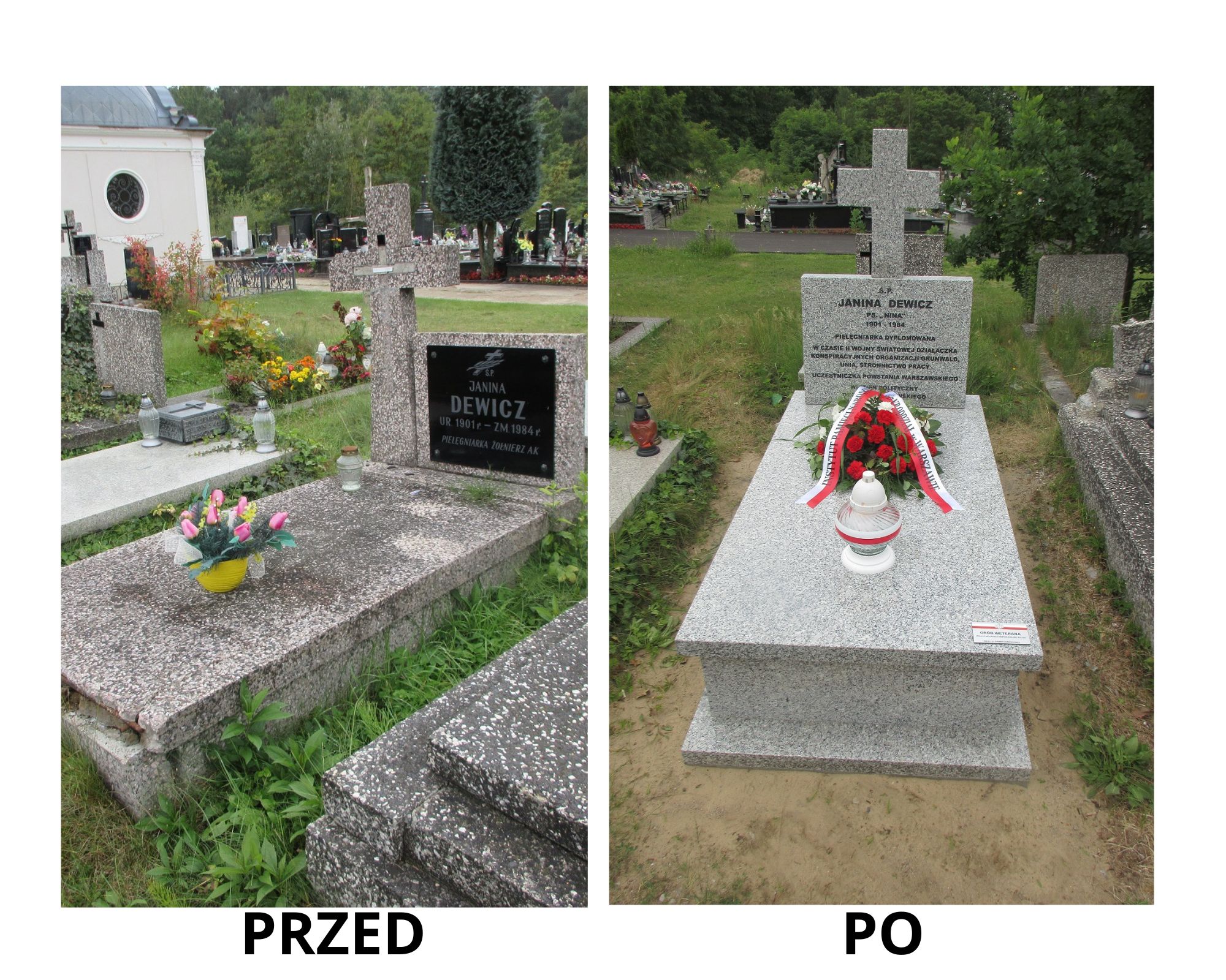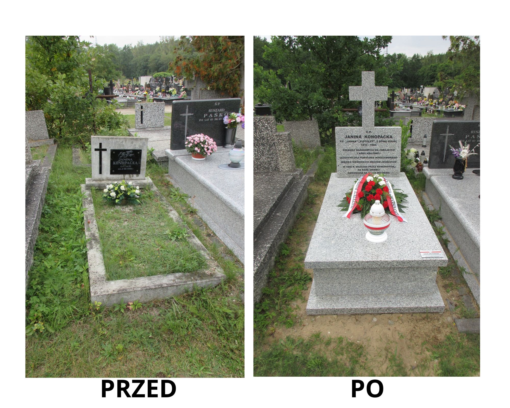 Na Cmentarzu Parafialnym w Skolimowie (Konstancin Jeziorna) uroczyście złożyliśmy kwiaty, zapaliliśmy znicze i oznaczyliśmy tabliczką ,,grób weterana”’ nowo wybudowane groby uczestniczek Powstania Warszawskiego: Janiny Konopackiej, Janiny Dewicz i Marii Leszeżanki.
