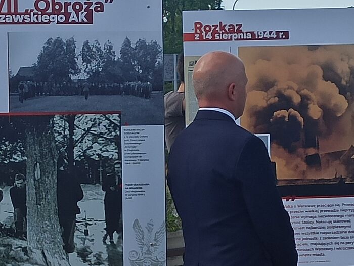Kolejnym punktem programu było przemówienie Andrzeja Kryńskiego, autora wystawy „Na odsiecz powstańczej Warszawie”, który wprowadził zebranych w tematykę ekspozycji. W swoim wystąpieniu podkreślił: