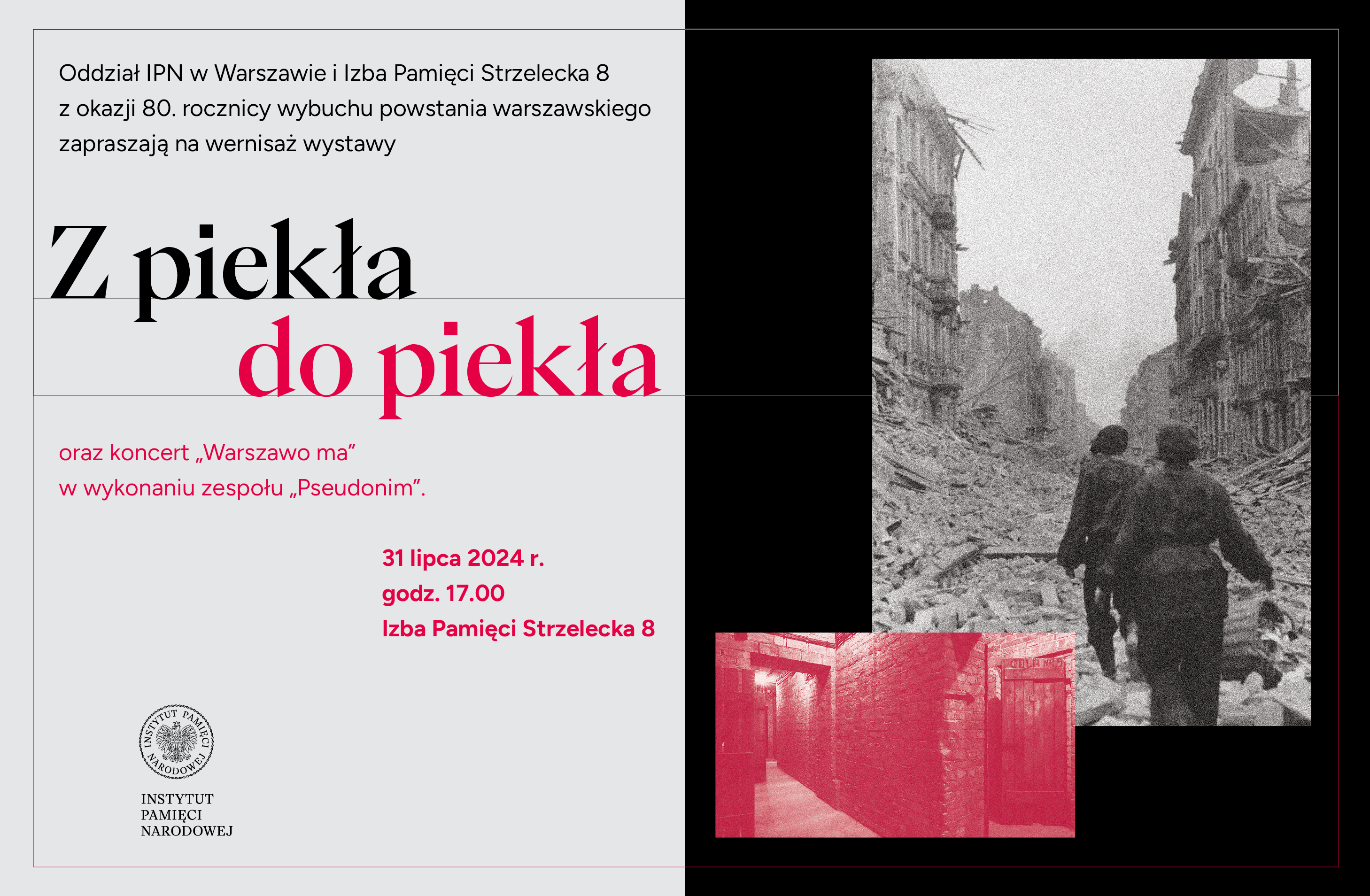 W środę, 31 lipca 2024 roku w Izbie Pamięci Strzelecka 8 w Warszawie odbyło się uroczyste otwarcie wystawy „Z piekła do piekła”, przygotowanej w związku z 80. rocznicą powstania warszawskiego. W wydarzeniu uczestniczyli licznie przybyli goście, w tym przedstawiciele instytucji państwowych oraz organizacji pozarządowych.