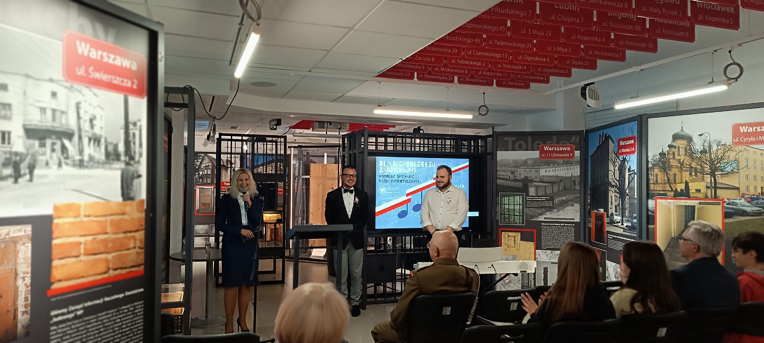 Spotkanie prowadził śpiewak i konferansjer Sebastian Boguszewski z Filharmonii Narodowej, zachęcając do wspólnego śpiewania takich utworów jak „Rota” i „Pierwsza Brygada.” Uczestnicy chętnie włączyli się w śpiew i rozmowy.