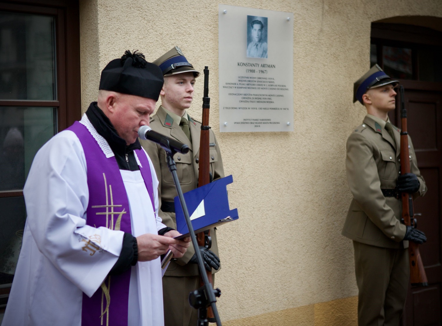 W części oficjalnej przypomniano losy bohatera. Konstanty Artman, urodzony w Pogroszewie, przez wiele lat związany był z Pruszkowem, gdzie prowadził własny warsztat kowalski. Po wybuchu II wojny światowej walczył w szeregach 9. Pułku Artylerii Ciężkiej, trafił do sowieckiej niewoli, a następnie do Polskich Sił Zbrojnych w ZSRS. W szeregach 2. Korpusu Polskiego przeszedł szlak bojowy, biorąc udział w kluczowych bitwach, w tym pod Monte Cassino, Ankoną i Bolonią. Wystąpienia okolicznościowe podkreślały, że jego życie jest świadectwem niezłomności, odwagi i oddania ojczyźnie.