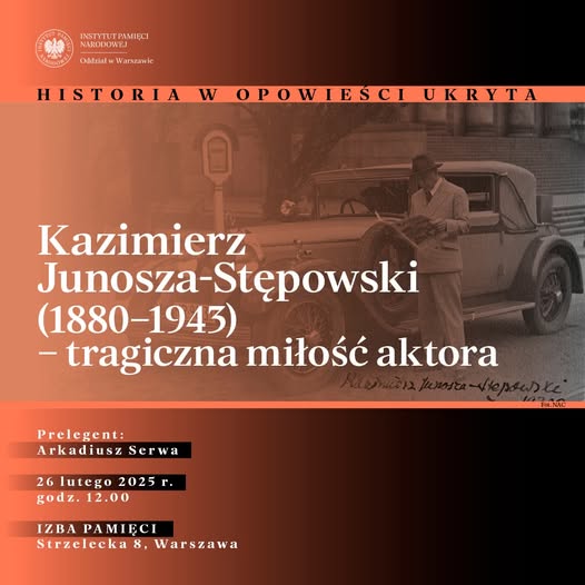 Prelekcja pt. „Kazimierz Junosza-Stępowski (1880–1943). Tragiczna miłość aktora” odbędzie się 26 lutego 2025 roku o godz. 12.00.