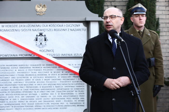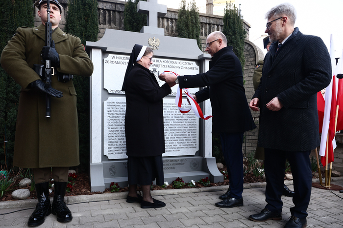 W służbie Bogu i ojczyźnie – uroczystość odsłonięcia tablicy upamiętniającej 100-lecie warszawskiej prowincji Zgromadzenia Sióstr Najświętszej Rodziny z Nazaretu – Warszawa, 22 marca 2025. Fot. Sławek Kasper (IPN) -