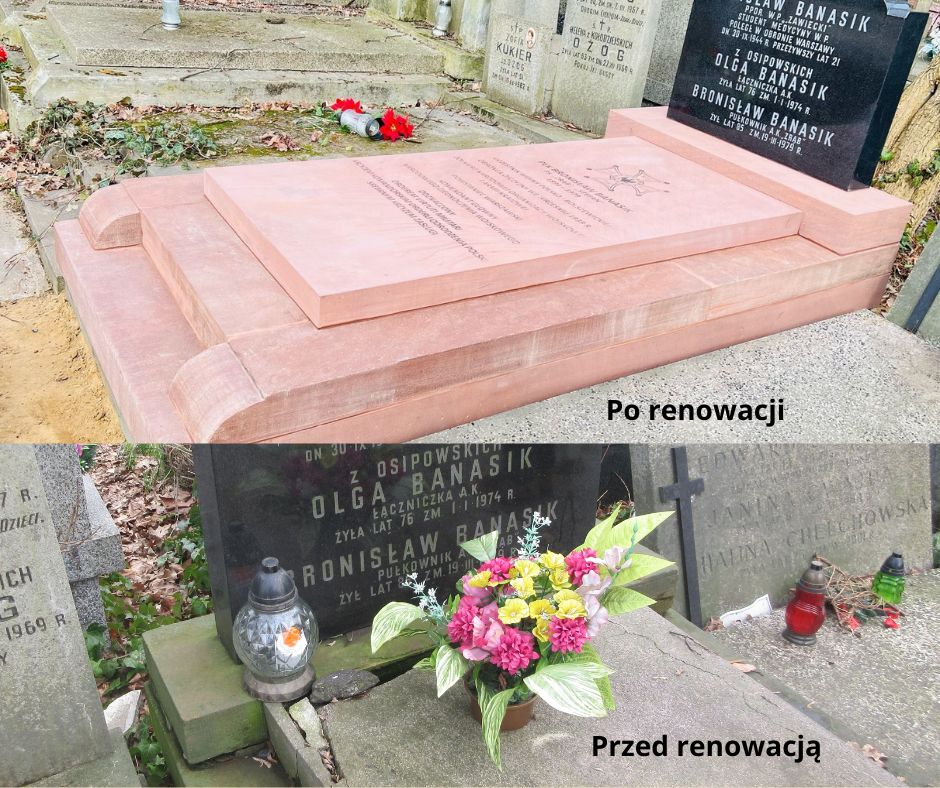 Na Cmentarzu Bródnowskim w Warszawie zakończyły się prace konserwatorsko-renowacyjne przy nagrobku płk. Bronisława Banasika (kw. 43B, rz. 6, gr.).