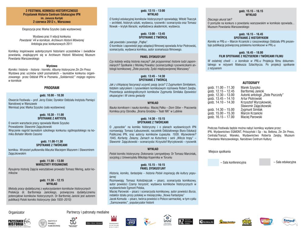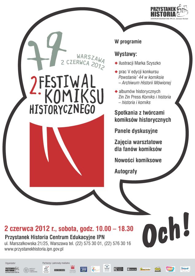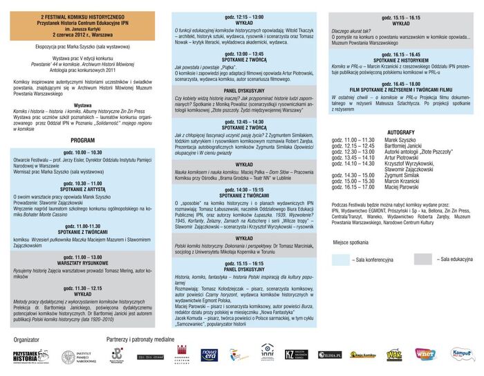 Przystanek Historia – Centrum Edukacyjne Instytutu Pamięci Narodowej im. Janusza Kurtyki, Muzeum Powstania Warszawskiego, Narodowe Centrum Kultury, Wydawnictwo Nowa Era oraz Zin Zin Press zorganizowały 2 czerwca 2012 r. 2. Festiwal Komiksu Historycznego.