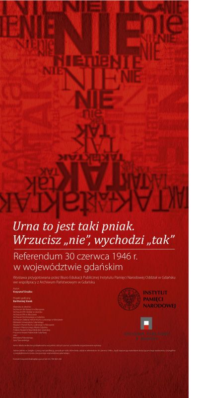 Wystawa została przygotowana 65 lat po referendum z 30 czerwca 1946 r., które stało się mitem założycielskim komunizmu w Polsce. Ekspozycja odsłania kulisy i mechanizm fałszerstw wyborczych komunistów oraz wpływ propagandy na postawy wyborców. Przybliża również nastroje społeczeństwa oraz atmosferę życia w Polsce pierwszych lat powojennych na przykładzie ówczesnego województwa gdańskiego.