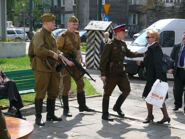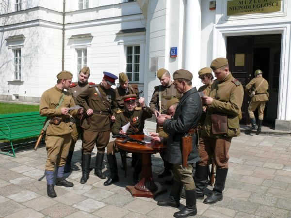 Podczas premierowego pokazu można było posłuchać sowieckich pieśni wojskowych oraz przyjrzeć się żołnierzom Armii Czerwonej, których w sugestywny sposób odgrywali członkowie Lubuskiego Towarzystwa Rekonstrukcji Historycznej. Przypadkowi przechodnie, jak i goście zwiedzający wystawę byli zatrzymywani i przesłuchiwani przez „uliczne patrole Armii Czerwonej”. U wejścia do Muzeum Niepodległości rozstawiono budki strażnicze, a wchodzącym na jego teren wystawiano specjalne, okazjonalne przepustki „pozwalające na poruszanie się po Warszawie”.