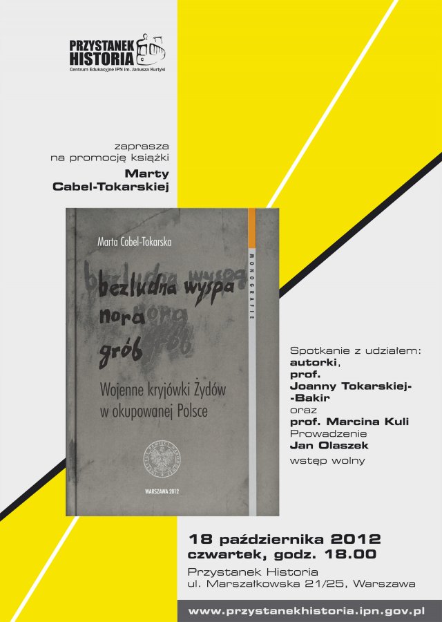 Promocja książki Marty Cobel-Tokarskiej „Bezludna wyspa, nora, grób. Wojenne kryjówki Żydów w okupowanej Polsce” – Warszawa, 18 października 2012, Centrum Edukacyjne IPN im. Janusza Kurtyki Przystanek Historia, Marszałkowska 21/25