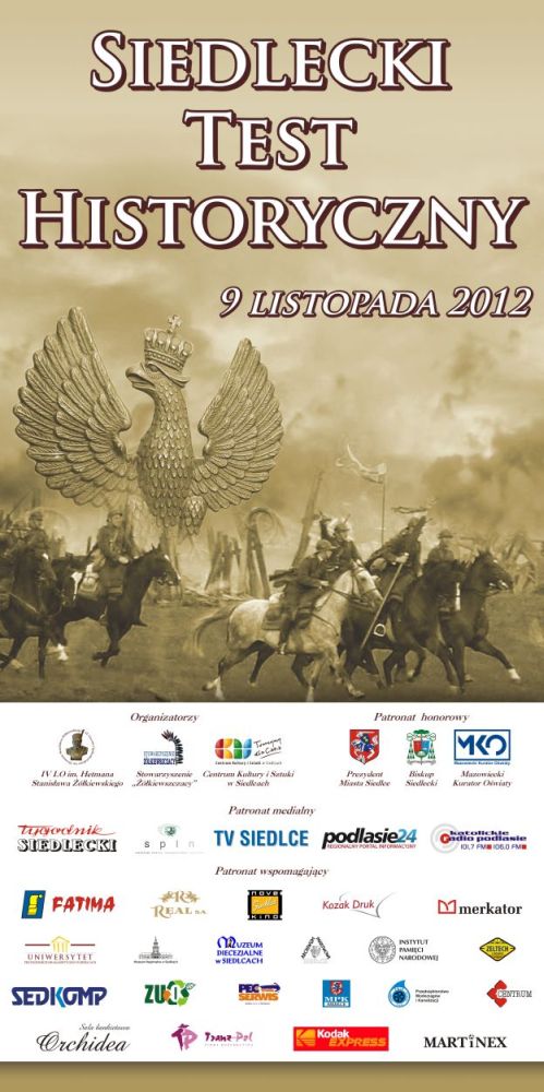 IV Liceum Ogólnokształcące im. Hetmana Stanisława Żółkiewskiego w Siedlcach i Stowarzyszenie „Żółkiewszczacy” zorganizowały I Siedlecki Test Historyczny z okazji Święta Odzyskania Niepodległości.