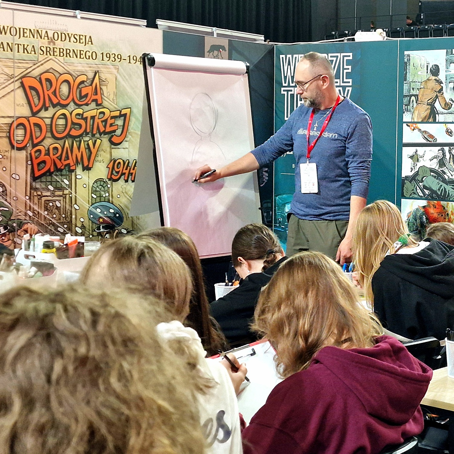 - Zajęcia z twórcami komiksów historycznych: Sławomirem Zajączkowskim (scenarzystą) i Krzysztofem Wyrzykowskim (rysownikiem), autorami serii „W imieniu Polski Walczącej” oraz „Wilcze tropy”. Spotkania były okazją do rozmów o historii, bohaterstwie i przekazywaniu pamięci w nowoczesnej formie.