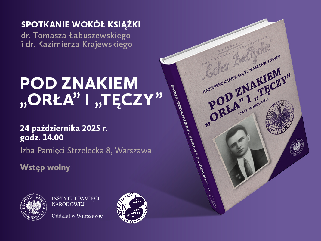 Instytut Pamięci Narodowej Oddział w Warszawie zaprasza na kolejne spotkanie poświęcone najnowszej publikacji autorstwa dr. Tomasza Łabuszewskiego i dr. Kazimierza Krajewskiego pt. Pod znakiem „Orła” i „Tęczy”. Trzy komendy XVI Okręgu Narodowego Zjednoczenia Wojskowego na północnym Mazowszu.