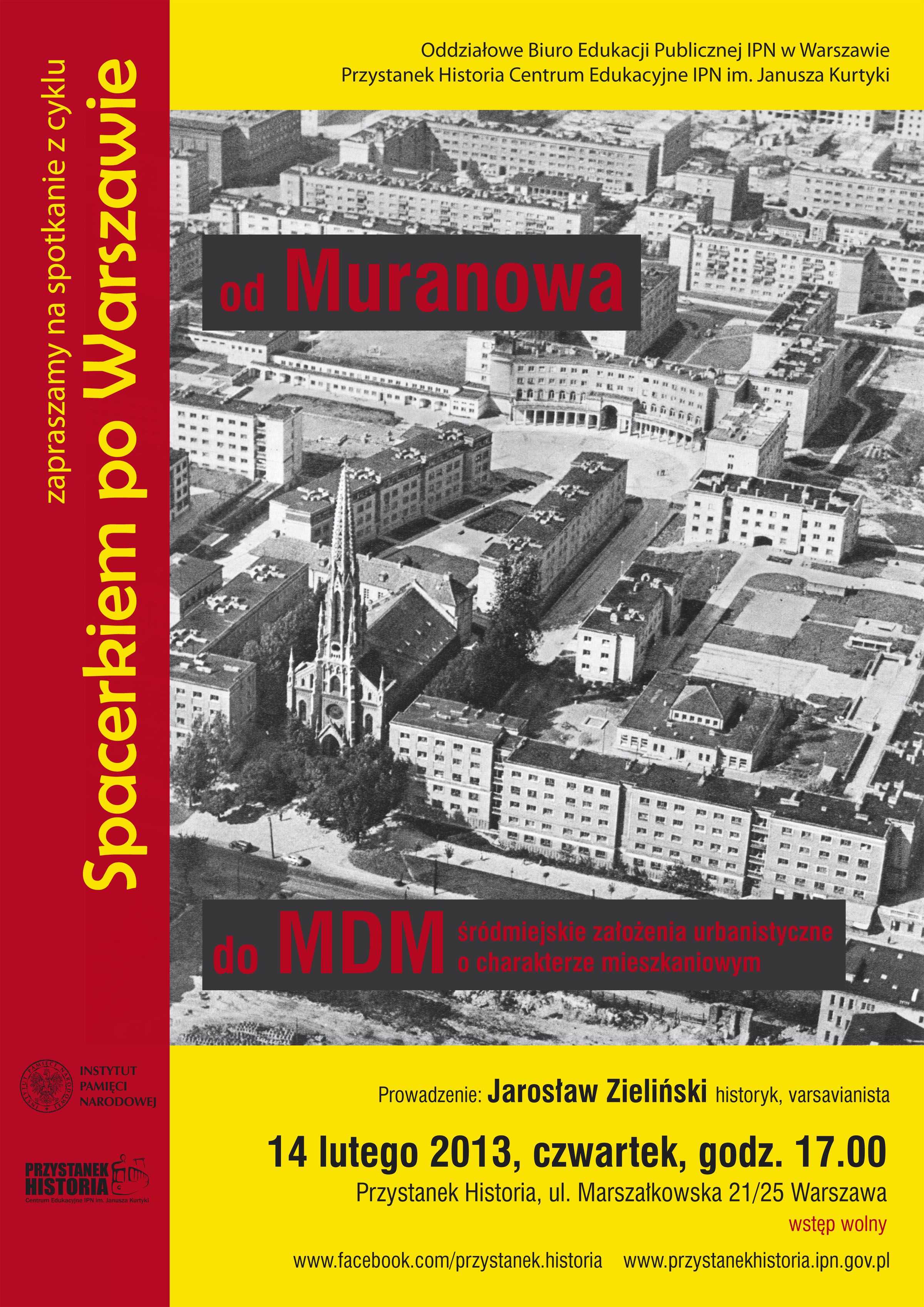Wykład: Jarosław Zieliński, historyk architektury i jeden z najbardziej cenionych współczesnych varsavianistów, autor m.in. wielotomowego Atlasu dawnej architektury ulic i placów Warszawy, albumu Warszawa zburzona i odbudowana, monografii Realizm socjalistyczny w Warszawie. Urbanistyka i architektura, przewodników historycznych po stołecznych dzielnicach, a także szeregu artykułów dotyczących historii i dziedzictwa Warszawy publikowanych m.in. na łamach „Stolicy” i „Spotkań z Zabytkami”.