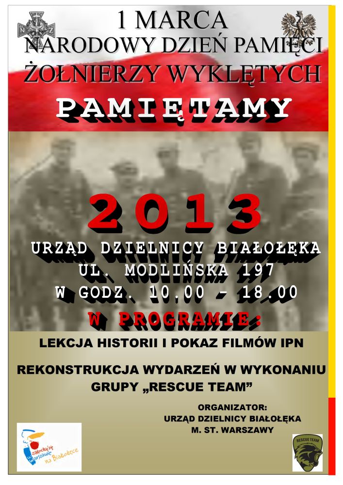 1 marca 2013 r. w Urzędzie Dzielnicy Białołęka m.st. Warszawy odbędą się obchody Narodowego dnia Pamięci Żołnierzy Wyklętych.