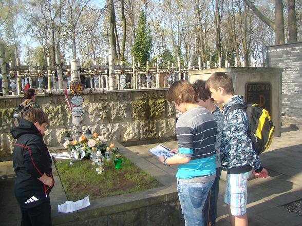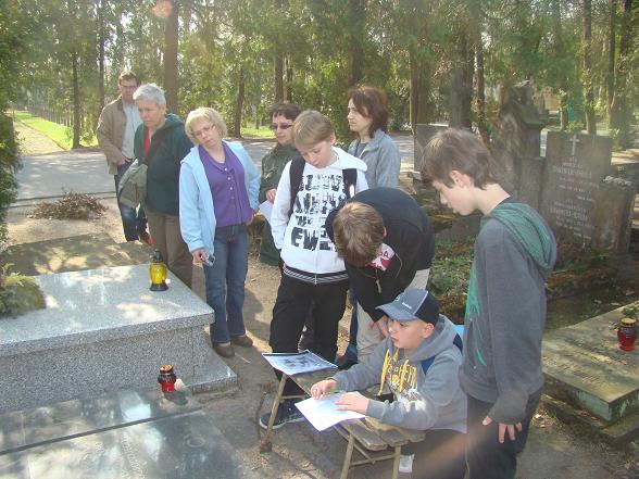 Zajęcia dla uczniów szkoły podstawowej z Rzeszowa na Cmentarzu Wojskowym na Powązkach – Warszawa, 26 kwietnia 2013