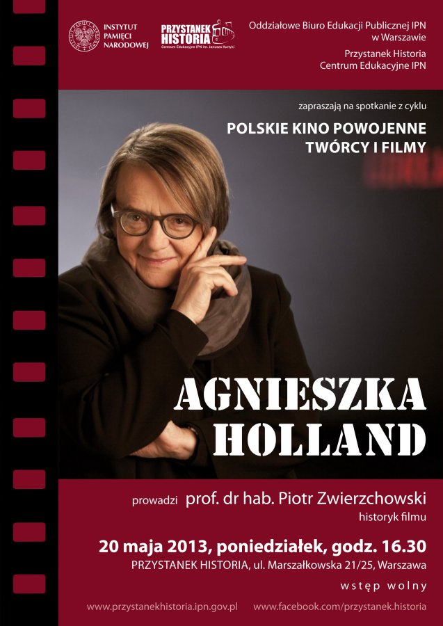 20 kwietnia 2013 (poniedziałek) w godz. 16.30–18.00 w Centrum Edukacyjnym IPN Przystanek Historia im. Janusza Kurtyki przy ul. Marszałkowskiej 21/25 odbyło się spotkanie zatytułowane Kino według Agnieszki Holland.
