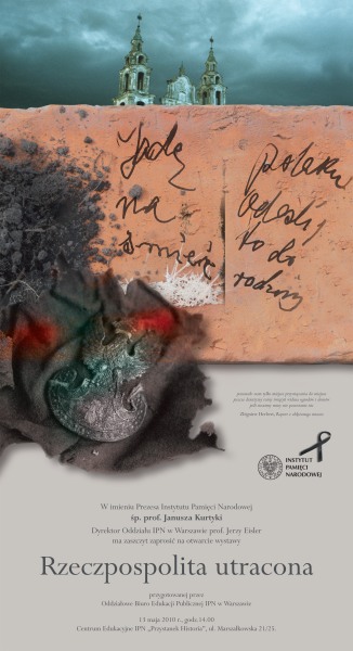 Przygotowana na 65-lecie zakończenia wojny przez Oddział IPN w Warszawie wystawa „Rzeczpospolita utracona” jest podróżą po Rzeczypospolitej, której już nie ma. Zniknęła bezpowrotnie, nie w wyniku normalnego rozwoju cywilizacyjnego i naturalnych procesów społecznych, ale na skutek kataklizmu, jaki stał się udziałem po 1939 r. To podróż po sferze duchowej „okaleczonego narodu” – strat spowodowanych okrucieństwem wojny w skali dotychczas nieznanej, demoralizacji i zdziczenia wojną. To dojmujące doświadczenie niesprawiedliwości po II wojnie światowej, deprecjacji wartości, wielu pojęć stanowiących o jakości moralnej życia publicznego i społecznego. To podróż po nowym kanonie tradycji i kultury, negującym – oczywisty do niedawna – dorobek pokoleń. To świat obco brzmiących znaczeń, „wielu prawd”, na nowo pisanej historii. To także odkrywanie świadectw prawdziwych – pozwalających zachować nadzieję na zwyczajną uczciwość, szacunek, tolerancję, humanizm.