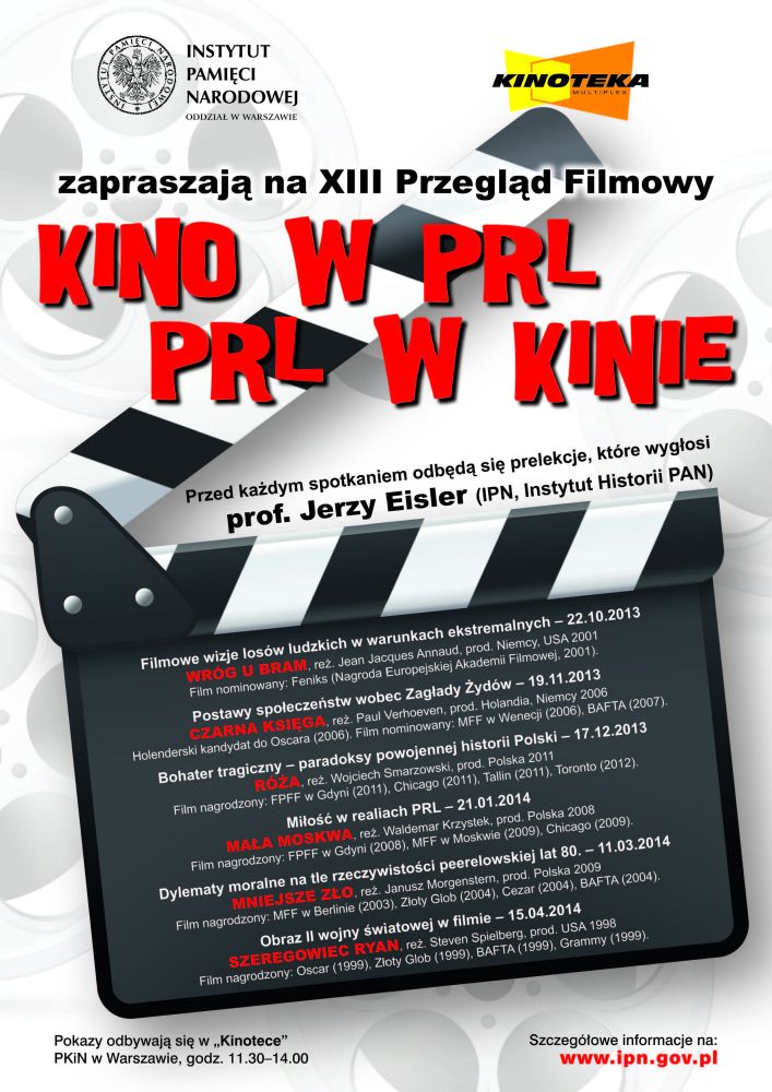 Instytut Pamięci Narodowej Oddział w Warszawie i warszawska „Kinoteka" zapraszają na XIII edycję Przeglądu Filmowego „Kino w PRL – PRL w kinie".