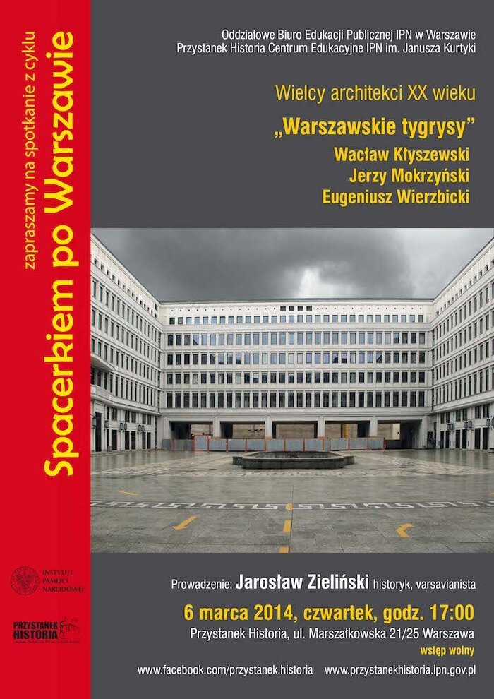 Wykład: Jarosław Zieliński, historyk architektury i jeden z najbardziej cenionych współczesnych varsavianistów, autor m.in. wielotomowego Atlasu dawnej architektury ulic i placów Warszawy, albumu Warszawa zburzona i odbudowana, monografii Realizm socjalistyczny w Warszawie. Urbanistyka i architektura oraz Pałac Kultury i Nauki, przewodników historycznych po stołecznych dzielnicach, a także szeregu artykułów dotyczących historii i dziedzictwa Warszawy, publikowanych m.in. na łamach „Stolicy" i „Spotkań z Zabytkami".