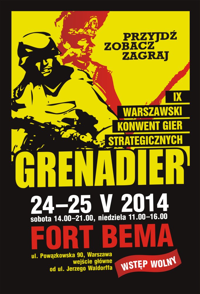 Grenadier to coroczne święto miłośników gier strategicznych i historii wojskowości. W tym roku odbędzie się już po raz dziewiąty. Gracze, rekonstruktorzy oraz widzowie zjadą się z różnych stron Polski. Odbywać się będą turnieje i pokazy gier strategiczno-historycznych, pokazy musztry i fechtunku, wystawy makiet, prelekcje, warsztaty plastyczne dla dzieci i całych rodzin, inscenizacje historyczne oraz pokazy sprzętu wojskowego.