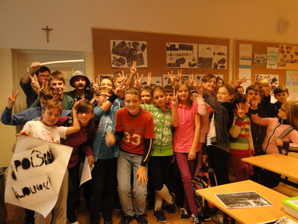W środę, 26 listopada 2014 r., w Szkole Podstawowej im. Włodzimierza Potockiego w Sękocinie odbyły się warsztaty edukacyjne, przygotowane przez pracowników Oddziałowego Biura Edukacji Publicznej IPN w Warszawie, w których uczestniczyli szóstoklasiści. W trakcie zajęć uczniowie obejrzeli krótką prezentację opowiadającą o powstaniu Solidarności i wprowadzeniu stanu wojennego, wcielali się w opozycjonistów, którzy wykonywali napisy podziemnej Solidarności za pomocą szablonów oraz przygotowywali kolaże na podstawie wybranych zdjęć wykonanych w stanie wojennym. Każdy z uczestników mógł też przebrać się w mundur milicjanta, założyć hełm i tarczę. Na koniec uczniowie biorący udział w warsztatach otrzymali gry planszowe IPN.