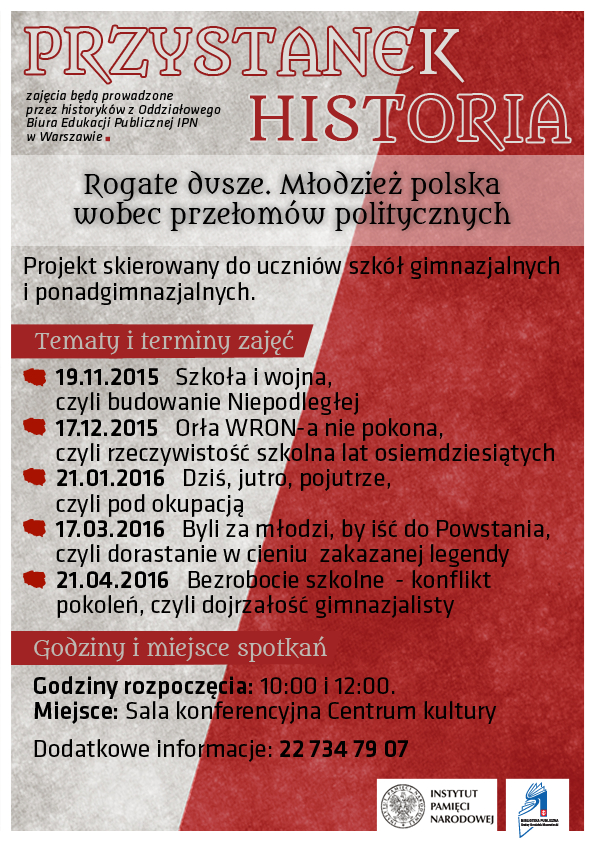 Projekt skierowany jest do uczniów szkół gimnazjalnych i ponadgimnazjalnych. Uczniowie zapoznają się z postawami przyjmowanymi przez młodzież w trakcie przełomowych wydarzeń historycznych oraz uświadamiają sobie fakt, iż jest ona trwałym składnikiem procesów historycznych i może te procesy świadomie kształtować. Cykl obejmuje pięć półtoragodzinnych spotkań, które składają się z dwóch części: wykładowej i warsztatowej.