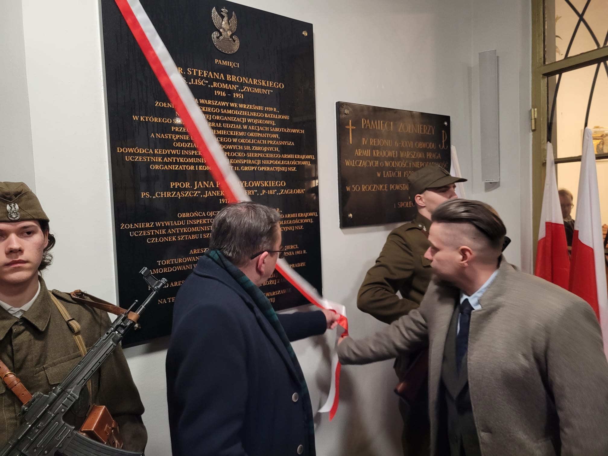 Kluczowym punktem wieczoru było poświęcenie i odsłonięcie pamiątkowej tablicy dedykowanej Stefanowi Bronarskiemu i Janowi Przybyłowskiemu. W ceremonii wzięli udział pracownicy Oddziałowego Biura Upamiętniania Walk i Męczeństwa IPN w Warszawie (OBUWiM) oraz członkowie stowarzyszeń historycznych m.in. Stowarzyszenia Historycznego „11 Grupy Operacyjnej NSZ”. Wartę honorową przy nowym upamiętnieniu zaciągnęli rekonstruktorzy w historycznym umundurowaniu i z bronią z epoki.