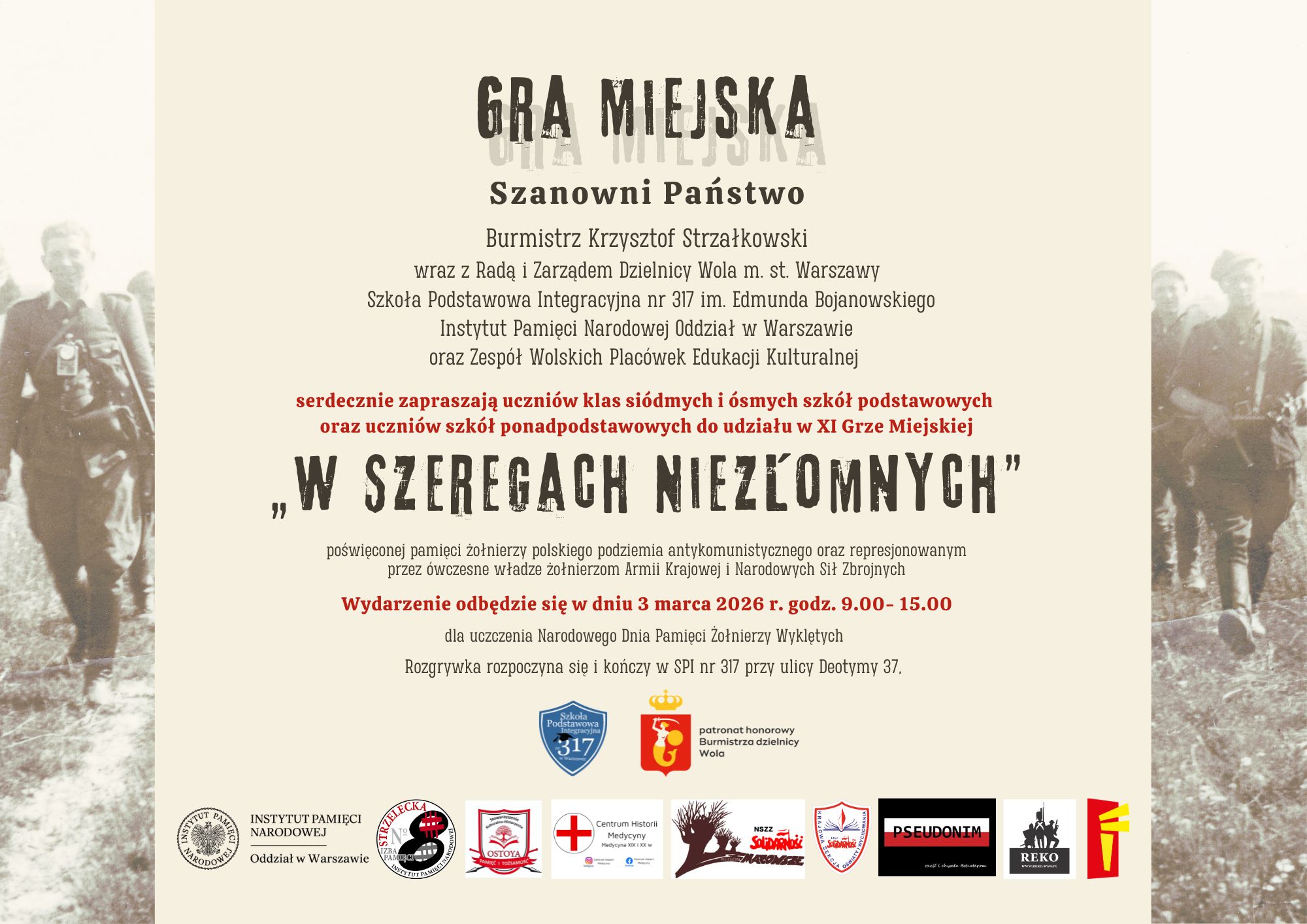 Tegoroczna XI edycja, której nieprzerwanie patronują Krzysztof Strzałkowski – Burmistrz Dzielnicy Wola m.st. Warszawy oraz Instytut Pamięci Narodowej Oddział w Warszawie, odbędzie się 3 marca 2026 r. w godzinach 9.00–15.00.