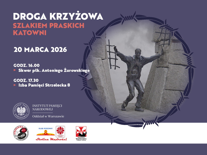 Towarzystwo Miłośników Polskiej Tradycji i Kultury, Izba Pamięci przy ul. Strzeleckiej 8 oraz Klub Rodzinny „Stolica Mądrości” serdecznie zapraszają do udziału w drodze krzyżowej szlakiem praskich katowni. Wydarzenie odbędzie się 20 marca 2026 roku. Start o godzinie 16.00.