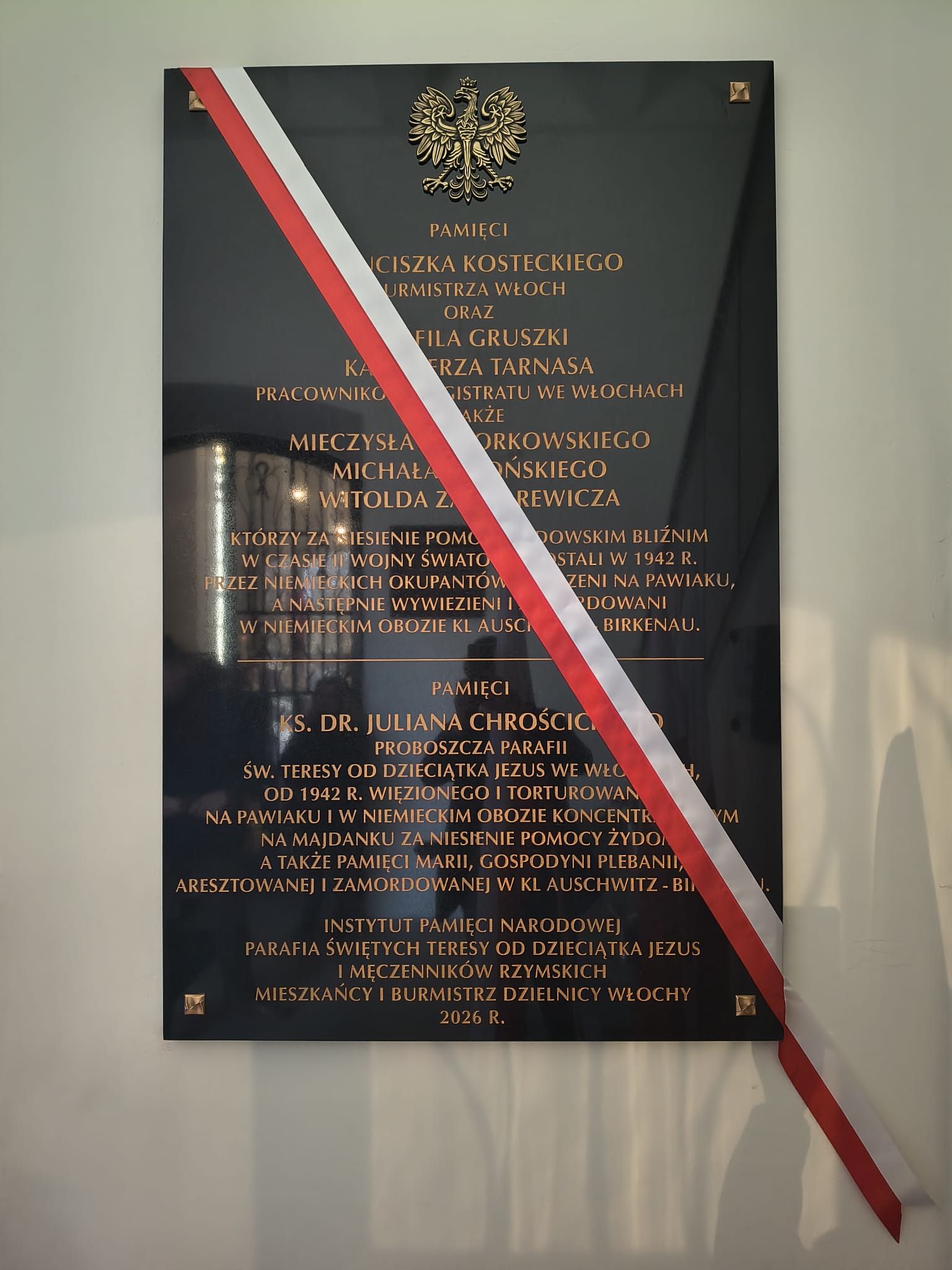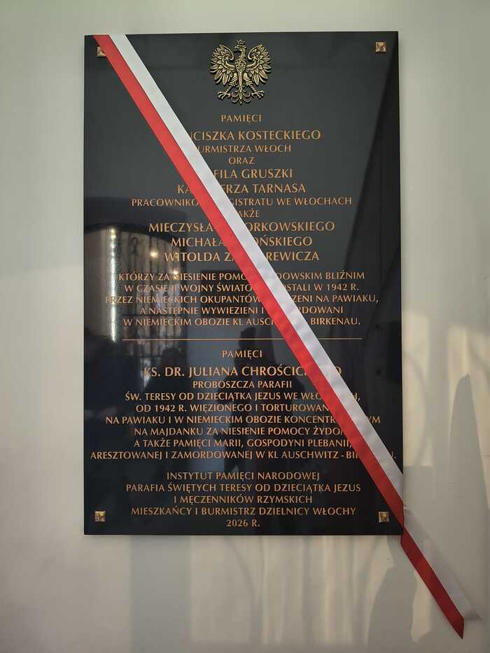 W niedzielę, 12 kwietnia 2026 r., w kościele pw. świętych Teresy od Dzieciątka Jezus i Męczenników Rzymskich przy ul. Rybnickiej 27 w Warszawie odbyła się uroczystość odsłonięcia tablicy upamiętniającej mieszkańców Włoch, którzy podczas niemieckiej okupacji nieśli pomoc Żydom.