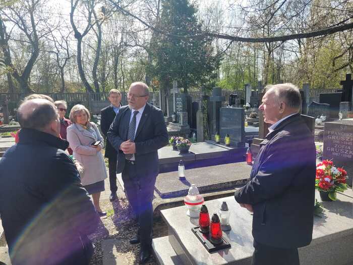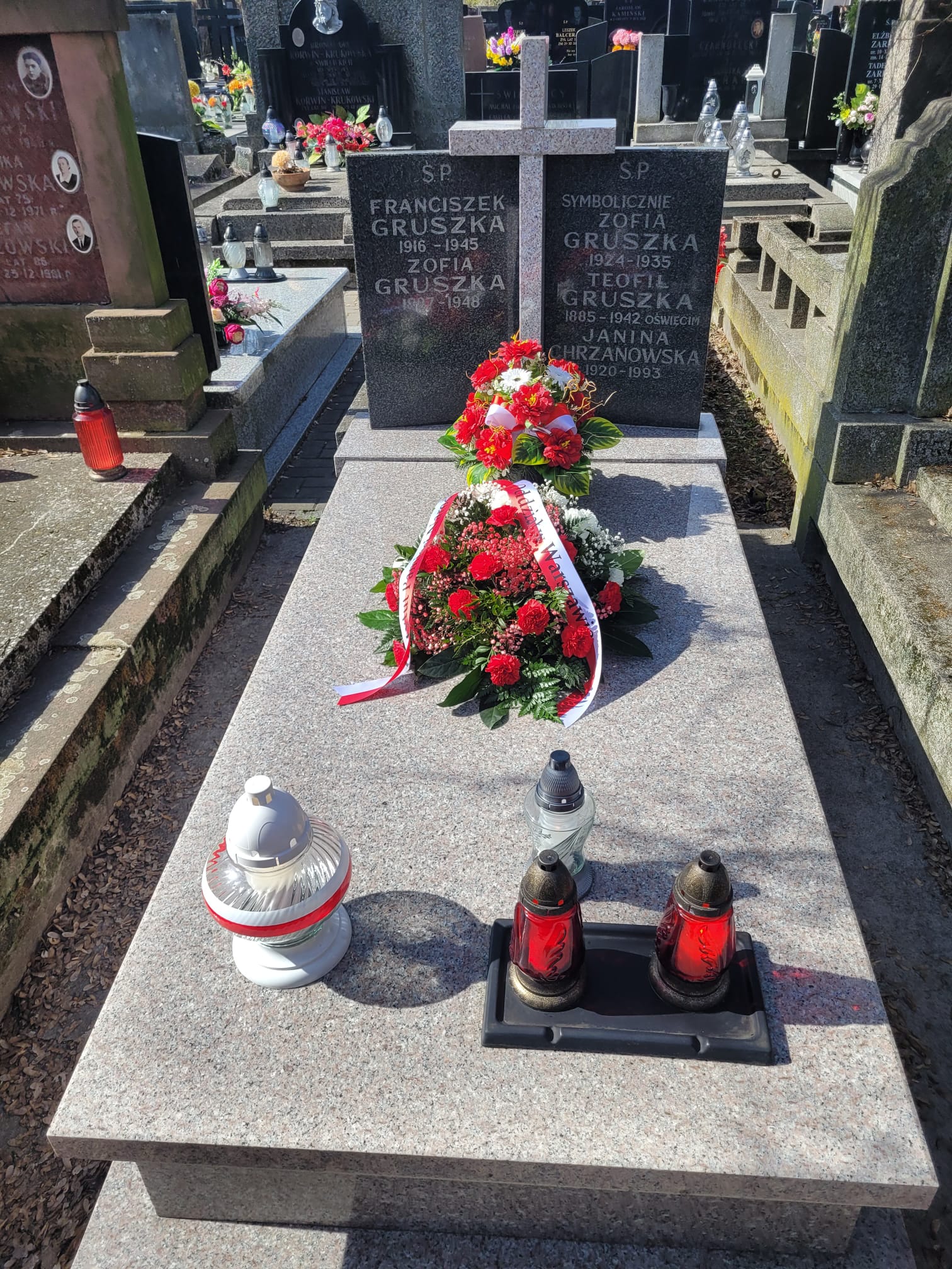 Po zakończeniu uroczystości przedstawiciele IPN wraz z rodziną Teofila Gruszki udali się na cmentarz parafialny we Włochach. Przy jego symbolicznym grobie dyrektor Adam Siwek złożył wiązankę kwiatów i zapalił znicz, oddając hołd jego pamięci.