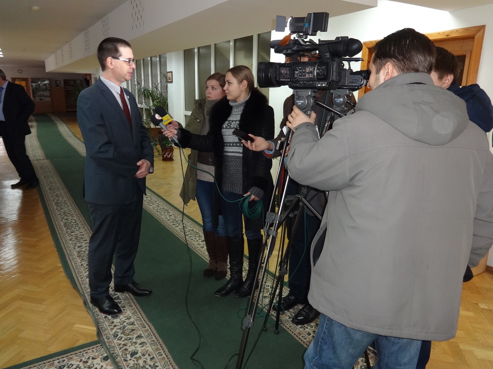 W spotkaniu uczestniczyli: Konsul Generalny RP w Łucku Beata Brzywczy, Dziekan Wydziału Filologii i Dziennikarstwa Wschodnioeuropejskiego Uniwersytetu Jurij Gromyk i zastępca dyrektora Biblioteki Uniwersyteckiej Lesia Jurczuk.