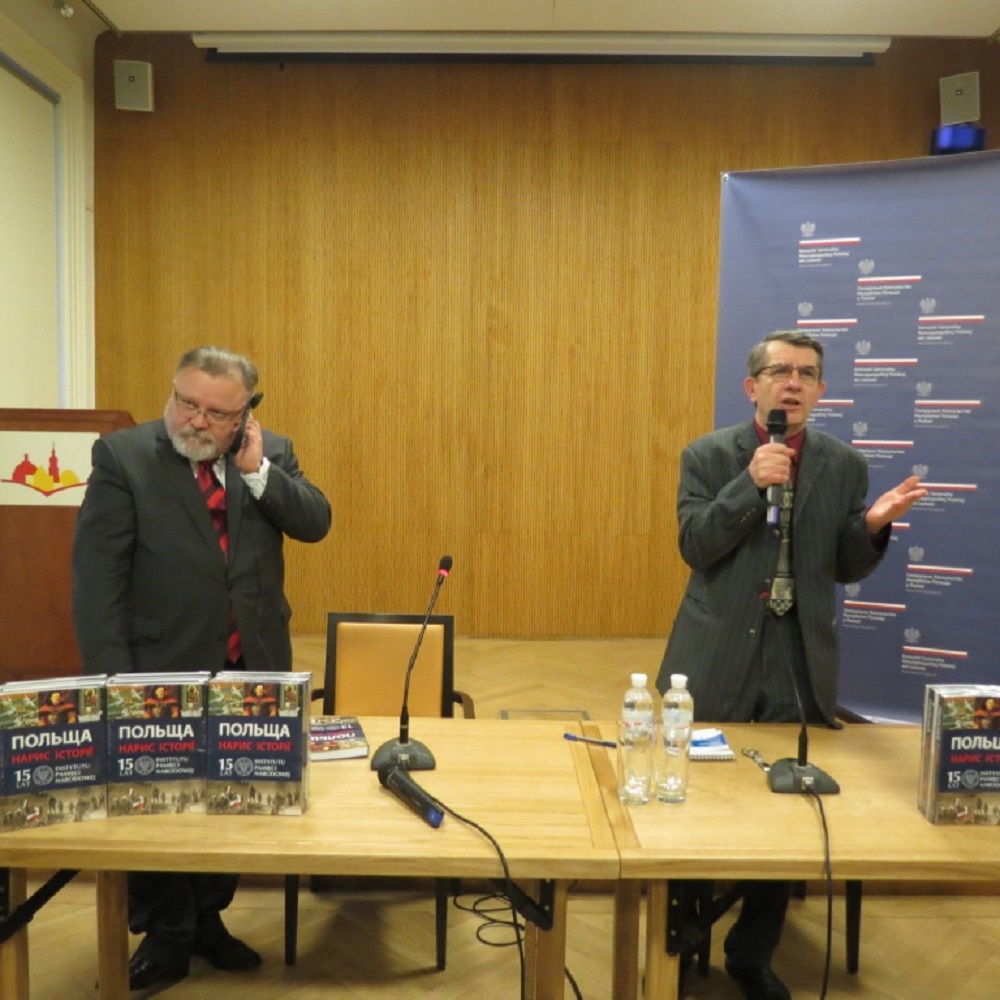 Historycy z Oddziałowego Biura Edukacji Publicznej IPN w Warszawie Jacek Pawłowicz i dr Dariusz Gałaszewski kontynuują promocję historii Polski na Ukrainie. W środę, 9 marca br. odwiedzili Lwów, gdzie zaprezentowali podręcznik IPN Historia Polski w zarysie (Польща – нарыс історії) – pełny wykład dziejów naszego kraju od Chrztu Polski do czasów najnowszych, pisany od początku z myślą o czytelnikach ukraińskich.