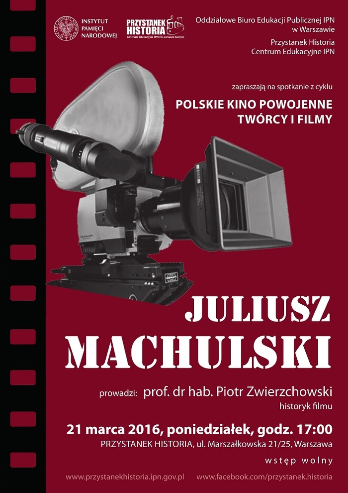 Dziesiąta edycja cyklu wykładów „Z kamerą po PRL-u” kontynuuje próbę przybliżenia wybitnych polskich reżyserów filmowych i ich osiągnięć artystycznych na tle ówczesnej rzeczywistości politycznej, społecznej i kulturowej. Spróbujemy opowiedzieć o bardzo różnych zjawiskach charakterystycznych dla powojennego kina polskiego; zarówno tych, które wprost wynikały z polityki kulturalnej tamtego okresu, jak i tych niezależnych artystycznie. Oprócz arcydzieł polskiego kina pokazane zostaną także fragmenty filmów o jednoznacznie propagandowym zabarwieniu. Seminarium adresowane jest do nauczycieli historii, języka polskiego, wiedzy o społeczeństwie, studentów kierunków humanistycznych oraz uczniów szkół ponadgimnazjalnych, z możliwością wykorzystania podczas egzaminu maturalnego z języka polskiego w nowej formule, sprawdzającej umiejętność analizy i interpretacji różnorodnych tekstów kultury, np. filmu. Proponujemy sześć spotkań w cyklu miesięcznym odbywających się od października 2015 r. do marca 2016 r.