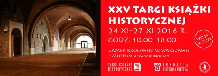 Już za kilka dni, w dniach 24–27 listopada 2016 r. odbędą się XXV Targi Książki Historycznej na Zamku Królewskim w Warszawie (Arkady Kubickiego).
