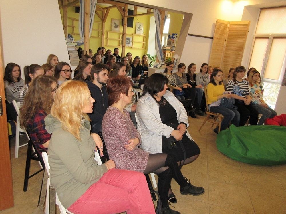 Wśród widowni przeważali studenci pierwszego i drugiego roku Filologii Polskiej Uniwersytetu Narodowego w Łucku. W spotkaniu uczestniczyła również docent Julia Wasiejko, wykładowca Filologii Polskiej na tym uniwersytecie, a także nauczyciele łuckich szkół i przedstawicielka Monitora Wołyńskiego.